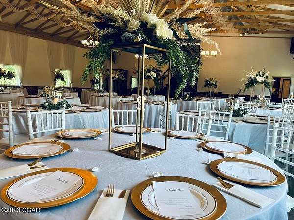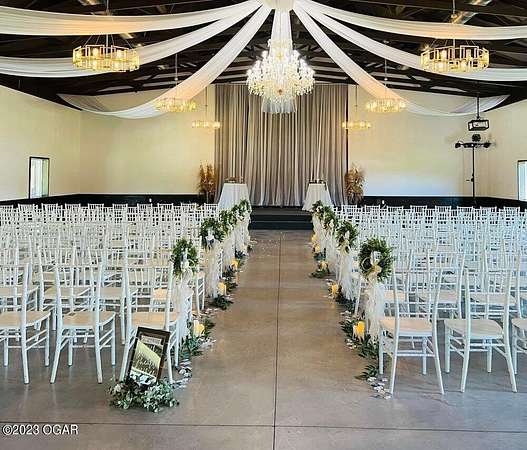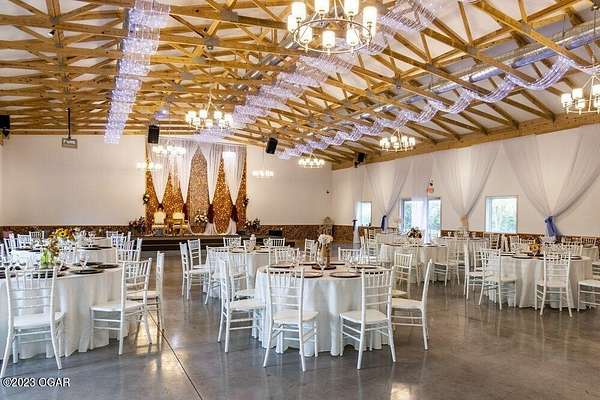 I Do Event Center has been designed for a feeling of rustic splendor. Spread out over 12,000 square feet of indoor space, it features two spacious Great Rooms that are perfect for weddings or events of all shapes and sizes. A 4,800 square foot patio perfect for outdoor ceremonies and elegant cocktail hours in the summer sun. 2 kitchen areas for meal prep or catering access, 2 oversized Dressing Rooms to get ready for the ''Big Day'', 1700+ sq ft of office space and storage. All decor, tables, chairs, sound and light systems included. 3 bedroom home currently under construction included, Exterior is complete, interior is framed with electrical, plumbing and HVAC ran. Live on property or use as an Air Bnb for additional revenue.