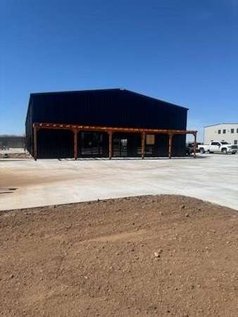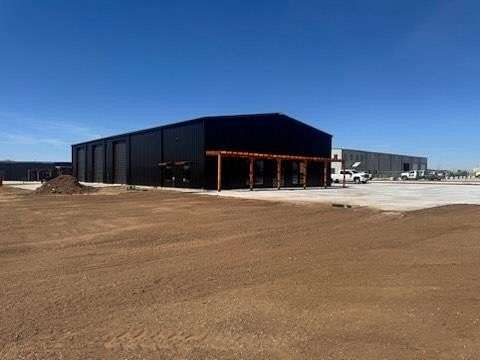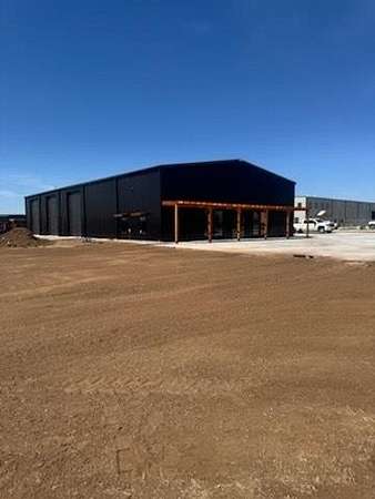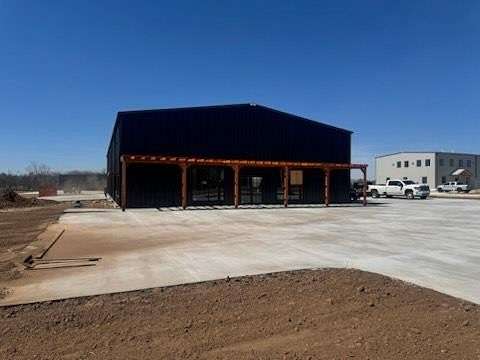 Est $11,437/moNewly constructed metal building with a modern black exterior situated on 2 acres, designed for warehouse or commercial use. The layout includes approximately 7,500 SF of warehouse space with a dedicated office/entrance area and restrooms, offering a functional setup for a variety of business types. Multiple oversized overhead doors provide easy access, along with a large concrete parking and drive area ideal for trucks, equipment, or customer parking. A covered front patio with wood beam accents and storefront-style windows enhances the front entry and office presence. Flexible layout with room to operate, located in a growing commercial area with surrounding new development and easy access in and out.