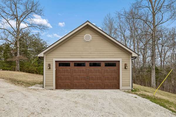 Outside, the property continues to impress with a detached two car garage offering additional storage or workspace. A charming shed sits at the top of the hill, adding character and utility to the property while taking full advantage of the elevated setting.