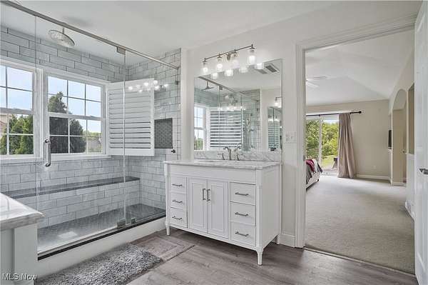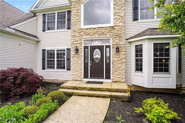 Welcome to this stunning 5 bedroom, 5 1/2 bath, 3 car garage colonial with All NEW carpet upstairs! Set on 2.35 picturesque acres in one of Concord Twp's most sought-after neighborhoods, with private community trails and direct access to Jordan Creek Park-complete with wooded walking paths and a ninja course for kids. Step through the welcoming foyer with a view of the sun-filled, two-story great room with a fireplace and wall of windows framing the serene backyard along with an entertainment center perfect for making a house a home. The open-concept design flows into a formal dining area with beamed ceilings and a stately office with a bay window. The heart of the home is the newly remodeled chefs kitchen featuring a 9-foot granite breakfast island, extra-wide 6-burner gas stove, built-in desk, and stylish LVT flooring throughout the first floor. A newly added mudroom with its own entrance keeps life organized with plenty of shelving and large area for a family "drop zone". The first-floor guest suite includes a private full bath-perfect for visitors or multi-generational living. The luxurious primary st boasts its own fireplace, wet bar, sitting area, and spa-like bathroom with his/her sinks, oversized tile shower, glass doors, multiple shower heads, bench seating, and plantation shutters. A huge DREAM walk-in closet doubles as a laundry room for ultimate convenience. Another upstairs bedroom includes a newly added full ensuite bath perfect for teen privacy or out of town guests. The finished basement offers even more living space with a full bath, mirrored workout room, living area and versatile bonus room. Entertain year-round under the newly constructed covered patio, complete with stone fireplace, outdoor TV, built-in grill and fridge -a true escape! Detailed woodwork, intricate ceiling finishes, many renos and whole home security system w/ window sensors and outdoor cameras elevate the home's timeless elegance! This home is ready for its next chapter! Must See!