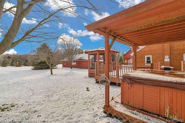 Welcome to your own slice of paradise! This all Brick Farmhouse nestled on 19.69 acres of absolute beautiful property is just waiting for you to embrace country living at it's best. Updates include dual heat source gas forced air furnace w/wood burning option, central air unit, hot water tank, new electrical in garage along with 7 new windows and 2 new garage door openers, new gutters with leaf filters on home/garage and Kohler 12 RESV "Full House" Generator. Includes country kitchen w/appliances, dining room, living room w/gas fireplace, 3 bedrooms, full bath with original tile. Original wood flooring throughout along with cove ceilings. Unfinished full basement with plenty of storage. Enjoy family barbecues on the large deck w/hot tub and screened in Gazebo. Also includes 2 car detached garage, large hay barn, barn with chicken coop/cow stalls and structure to park your Farm Equipment/Recreational Utility Vehicles. Enjoy viewing the deer and turkeys from living room window! Image the memories you'll create owning this slice of heaven!