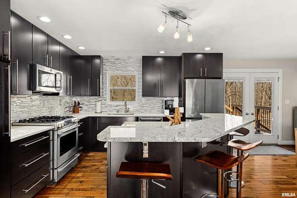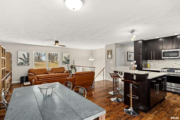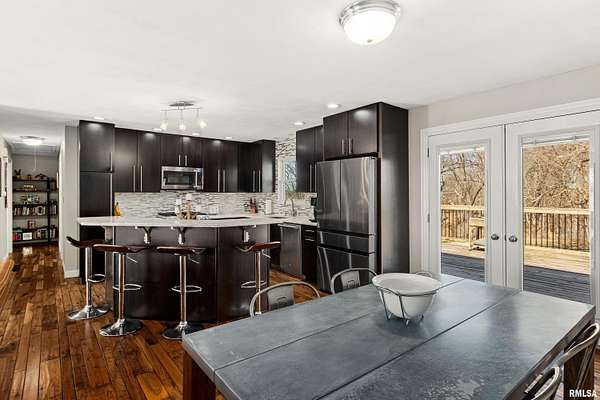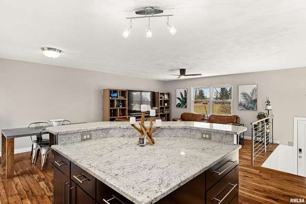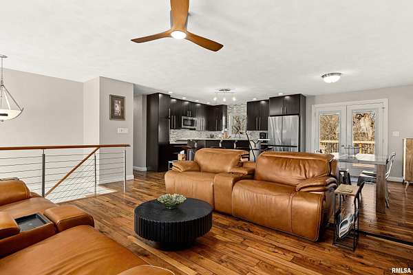 HERE. IT. IS! No, you're not dreaming. This is not a mirage, nor is this a drill. This is ACTUALLY an extremely well-built, BEAUTIFUL home with over 6 acres zoned agricultural in rural Dunlap (less 10 a minute drive to DHS) that is priced to SELL! Seated way back from the road on a double lot, this property is so serene. The home has been loving cared for & remodeled with a sharp, clean, modern mid century vibe. Open kitchen/dining room/livingroom combo. 3 bedrooms, 2 bathrooms & plenty of room to grow if you need more in the professionally finished, dazzling, bright, walkout, daylight-windowed, lower level that currently houses a family room, recreation room, a wet bar with mini fridge, an office, a full bath and a gorgeous, giant laundry room. All of the high-end fixtures you've been looking for are here with skillful decor. Plus, look at that view! All kitchen appliances are staying. Amazing front and back patios, deck & a shed. Brand new roof, siding in 2019, new water heater 2022, new HVAC 2010.