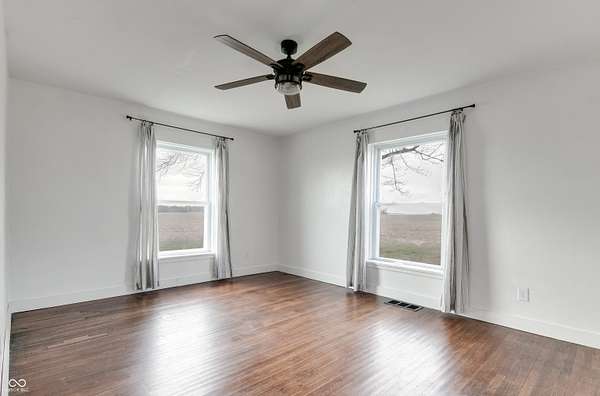 Charming rural home featuring a new heating and cooling system installed in 2022. Enjoy ample yard space and the convenience of a highway location just minutes from Greensburg, Rushville, and I-74. Interior highlights include hardwood floors, a beautifully remodeled kitchen and bathroom, and a spacious attic and basement for additional storage. The third bedroom is currently being used as a laundry/storage room, but washer and dryer hookups remain in the basement should you prefer to convert it back to a bedroom. There also was room for a half bath but has been removed. However, the plumbing still remains if you'd like to convert it back! Property also includes a 30x30 shop with a concrete floor, a covered front porch, and the freedom of no HOA.
