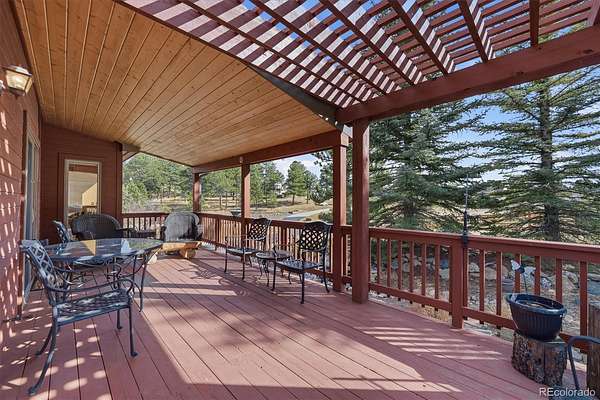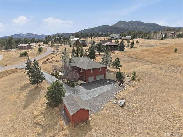 Outside: 8 parking spaces, RV parking, oversized tuck-under 3-car garage, custom shed with conduit ready for power, and a well-maintained asphalt driveway engineered for rapid snow melt. Elk Meadow Park minutes away. Red Rocks 20 minutes. Skiing and year-round recreation under an hour.
