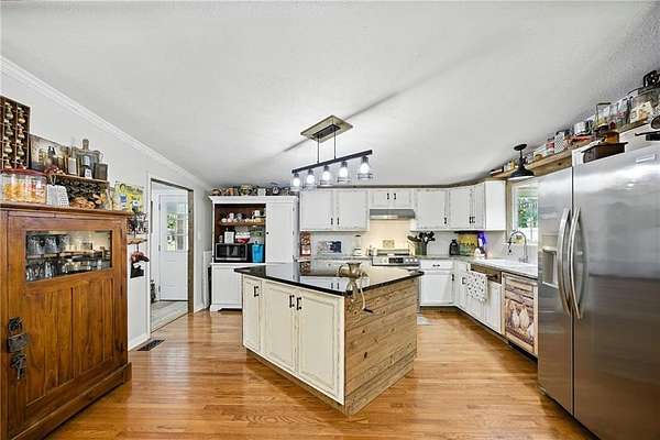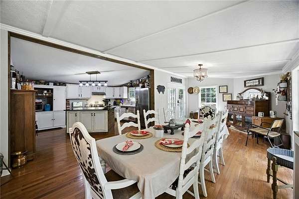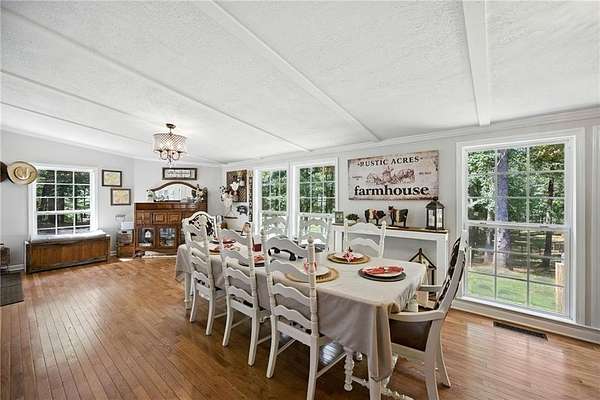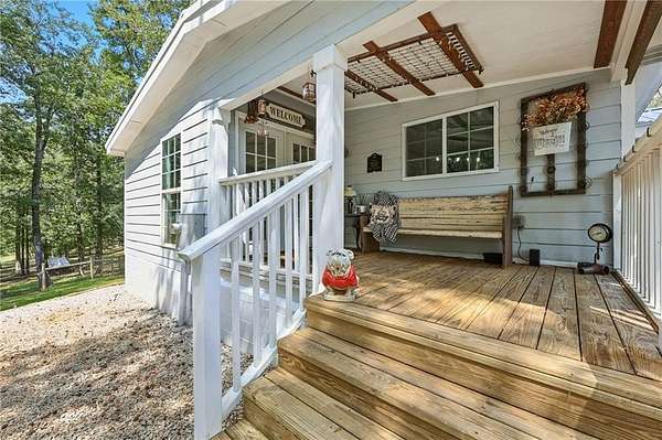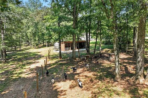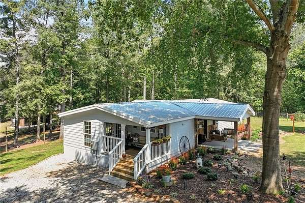 Motivated Seller - Discover the perfect blend of country charm and modern convenience with this beautifully remodeled Manufactured home set on a permanent foundation. Nestled on 26 acres with 200+ Feet of Hudson River Frontage, this property offers privacy, space, and endless possibilities-all just minutes from downtown Commerce and convenient to I-85. Currently operating as a working mini-farm, the property is fully fenced and features multiple barns and outbuildings, a detached garage, and a 4-stall pole barn ideal for large campers, boats, or farm equipment. A natural pond adds to the serene landscape, while a custom outdoor fire pit or the Hand built pier on the pond makes the perfect gathering spot for family and friends. Animal lovers will appreciate the opportunity to continue the legacy of this farm: while livestock is not included, the seller is willing to leave behind two cherished donkeys (a bonded mother and son pair) for the right buyer. Whether you're seeking a private homestead, hobby farm, or a retreat with abundant space for recreation and storage, this property delivers. With gated drive, gorgeous landscape, and river frontage, it's truly a rare find.