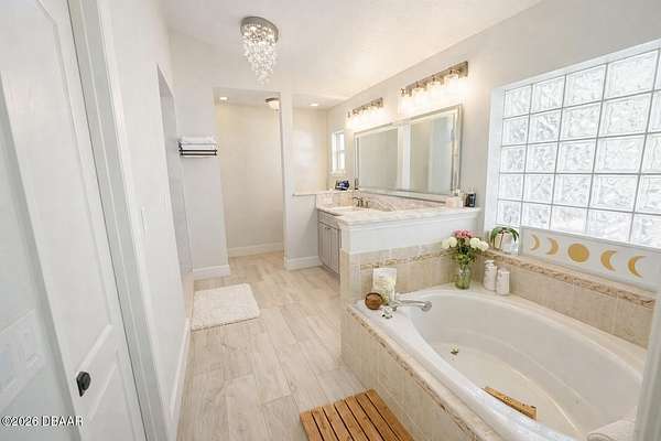 - Ceiling Fan(s), Eat-In Kitchen, Entrance Foyer, Kitchen Island, Open Floorplan, Pantry, Primary Bathroom -Tub With Separate Shower, Primary Downstairs, Split Bedrooms, Vaulted Ceiling(s), Walk-In Closet(s)