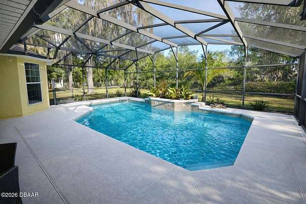 Welcome to your private slice of Florida paradise! This beautifully updated block construction 4-bedroom, 2-bath pool home sits on 2.55 acres and offers the perfect blend of space, quality, and modern upgrades. Built in 2004 and fully renovated in 2023, this 2,440 sq ft living (3,085 total) home showcases soaring 12+ ft vaulted ceilings and an open-concept layout designed for both everyday living and entertaining. A stunning dual-sided granite fireplace anchors the main living spaces, creating warmth and elegance throughout. The spacious kitchen is truly the heart of the home, featuring Level 3 granite countertops, a large entertaining bar, pull-out pantry, and generous prep space--ideal for hosting family and friends. The split floor plan offers four oversized bedrooms plus a dedicated office/flex space to fit your lifestyle needs. Two bedrooms feature new carpet, while the main living areas shine with Level 4 porcelain tile. The primary suite includes a beautifully updated bath with Welcome to your private slice of Florida paradise! This beautifully updated block construction 4-bedroom, 2-bath pool home sits on 2.55 acres and offers the perfect blend of space, quality, and modern upgrades. Built in 2004 and fully renovated in 2023, this 2,440 sq ft living (3,085 total) home showcases soaring 12+ ft vaulted ceilings and an open-concept layout designed for both everyday living and entertaining. A stunning dual-sided granite fireplace anchors the main living spaces, creating warmth and elegance throughout. The spacious kitchen is truly the heart of the home, featuring Level 3 granite countertops, a large entertaining bar, pull-out pantry, and generous prep space--ideal for hosting family and friends. The split floor plan offers four oversized bedrooms plus a dedicated office/flex space to fit your lifestyle needs. Two bedrooms feature new carpet, while the main living areas shine with Level 4 porcelain tile. The primary suite includes a beautifully updated bath with large walk in shower and soaking tub for a true retreat feel. Step outside to your private pool oasis, complete with a 2024 pool pump and filter and a saltwater system for easy maintenance. Ample storage with 2 storage sheds and a large chicken coop for all your feathered friends. The home has been thoughtfully improved with major updates including: " 2023 full renovation " 2024 A/C, water heater, and roof " 2024 new stucco and exterior sealing " Whole-home water filtration system Constructed of solid block with stucco finish and accessed via a quiet gravel road, this property offers privacy, durability, and room to breathe -- all while being move-in ready with all big-ticket items already done. If you're looking for acreage, modern updates, and a pool home built to last, this one checks every box!