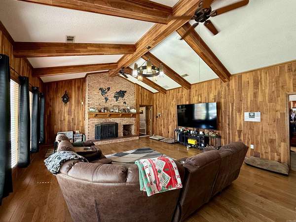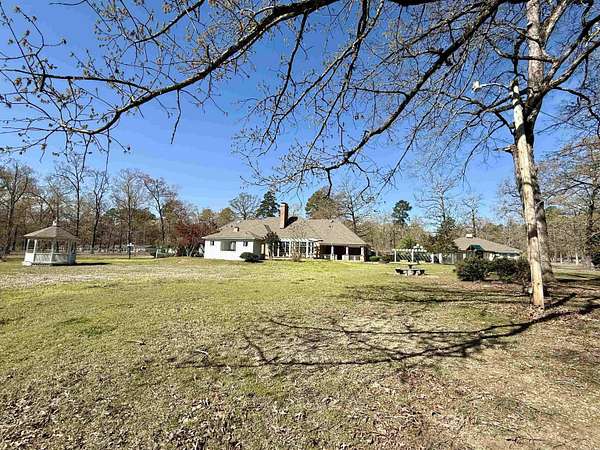 Situated on 7.63 acres in Fordyce, Ar, this exceptional 3,929 square foot residence offers privacy, space, and refined comfort. Approximately two acres are fenced, ideal for pets or hobby use. Inside, the home features granite countertops, a formal dining room, an impressive foyer, and a living room highlighted by wood beams and a fireplace. A bonus family room provides additional flexibility for entertaining or everyday living. The main house includes 4 bedrooms and 3 1/2 bathrooms, with a spacious primary suite offering separate his-and-hers bathrooms. Exterior amenities are equally impressive and include an attached two-car garage, greenhouse, shop, pool house with bathroom, storage shed, and a two-car carport with extensive storage capacity. 2 brand new, high-efficiency HVAC units, new water heater, & newer roof. This is a truly gorgeous property in Fordyce, AR, ready to welcome its next owner. *1 BR upstairs, 3 BR downstairs.