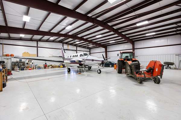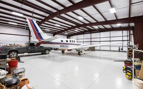 The 70×70 Braemar steel aircraft hangar, one of the largest hangars in southern Colorado, is fully insulated, and has geothermal/radiant-heated, sealed-epoxied-concrete floors, and 200-amp service. It’s plumbed for water, septic, and a bathroom. It features bi-fold, roll-up, and walk-in doors; the entire north wall is a 16×60 bi-fold electric aircraft door. The hangar will accommodate the Cessna 400 or most 500 series, Piper Cheyenne, Learjet 20 or 30 series, Platus PC12, and most Aero Commanders. It can house 4 single engines, two large twin engines, or one large jet such as a Falcon. It has held up to 5 of the owners’ aircraft at once.