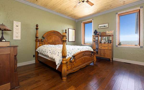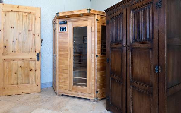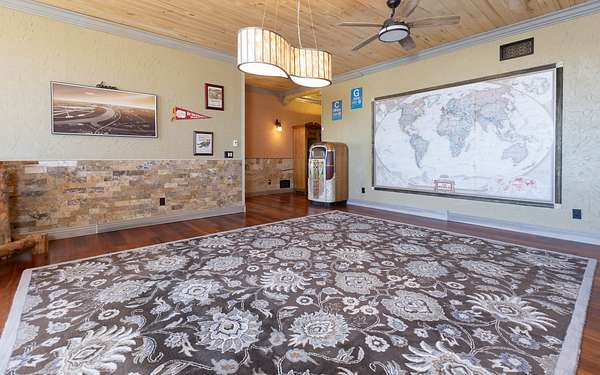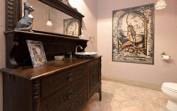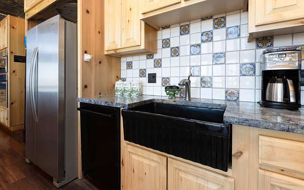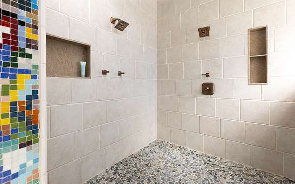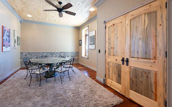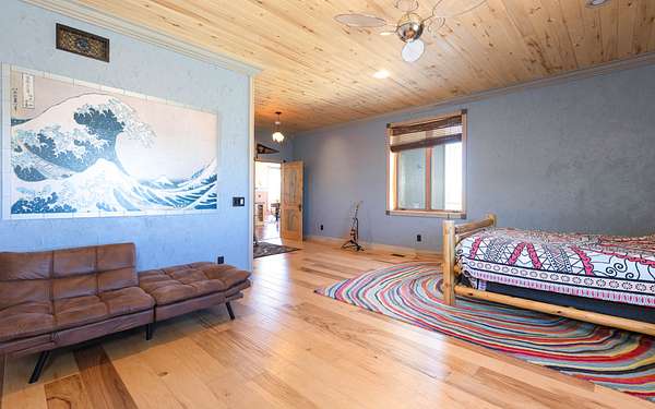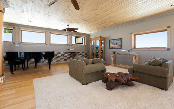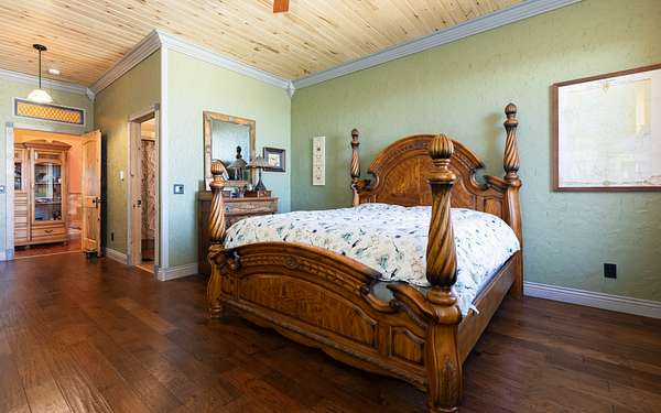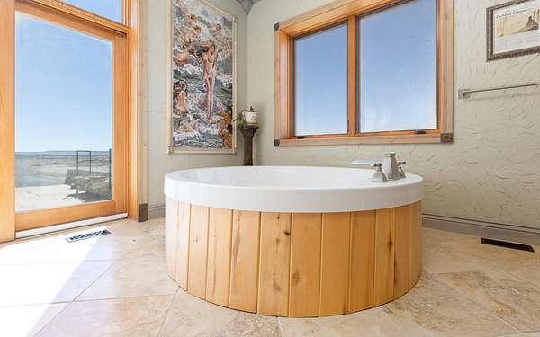 Each of the 3 vast bedrooms has an en-suite bathroom. The 20×25 master bedroom has a walk-in closet, and the attached 20×20 master bath features an infrared sauna, whirlpool tub, multihead walk-in shower, and handmade Coyote Glass sink.