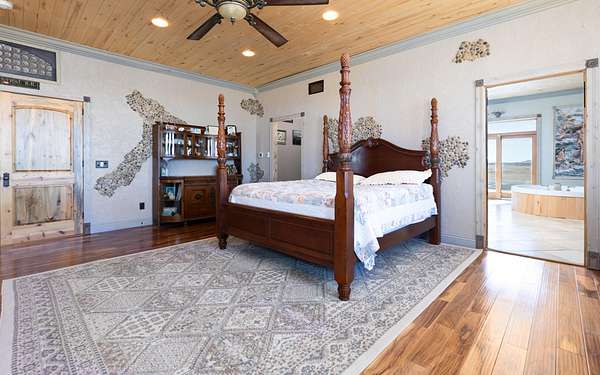 The ranch’s 130’ well is on record as having produced an impressive 60 gpm on construction. Flying D Ranch sells with all deeded water, wind, and mineral rights.