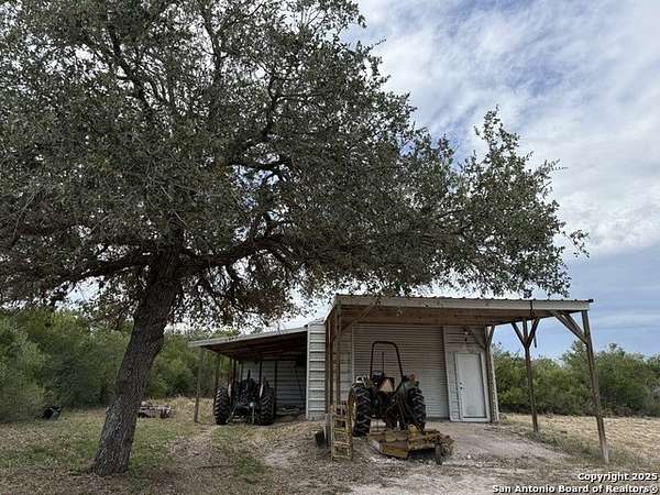 Located near Cadiz northwest of Beeville, this 46+ acre lot is the perfect place to get away from it all! Includes a cozy 2 bedroom/1 bathroom camp house with a rustic outdoor bar and a large closed-in back patio set up for target shooting from indoors - complete with a shooting stand and a gun embrasure. Numerous cub scout badges have been earned on this property - hiking, target and skeet shooting, fishing, canoeing, tracking, camping and outdoor cooking to name a few. A large barn with covered areas on three sides can hold a nice-sized workshop, tractor and more. Spot deer, hogs, coyotes, turkeys and things that slither and swim. "Bob" the bobcat has been a frequent boarder in the treehouse for years! A pump-fed pond with a windmill for aeration is located a short walk from the main house and is complete with a clay bottom to help it retain water. An outdoor kitchen/loft building is in progress near the pond, featuring recovered wood interior walls, a metal roof and awning. Senderos have been cut through the brush for ease of traversing the property and animal tracks and beautiful wildflowers are more often than not found up and down them. The northwest corner of the property is the highest point and provides views for miles around. That area is also set up for a second well-fed pond. Fifteen minutes to Beeville, 16 minutes to George West, and a little over an hour to Corpus Christi - this is the perfect home or weekend getaway for those who want a quiet life and/or more time in nature.