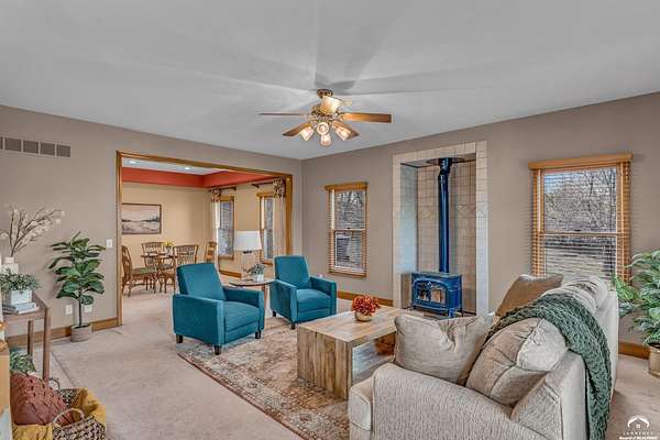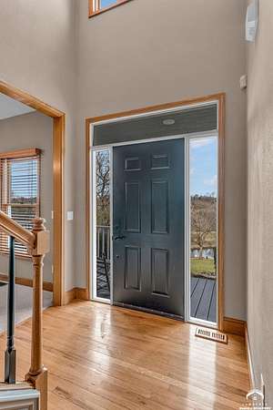 Peaceful Rural Retreat on 10 Scenic Acres! Surrounded by established trees and overlooking a charming pond with rolling hillside views, this property delivers privacy and a beautiful natural setting. Offering more than 2,500 square feet, the home is designed for easy main-level living with the primary suite and laundry conveniently located on the first floor. Upstairs, you'll find two generously sized bedrooms connected by a Jack-and-Jill bath, each with large closets for ample storage. The full, unfinished walkout basement provides excellent potential for future expansion, while a versatile studio or loft space above the garage, accessible from inside the home, adds flexibility for a home office, creative space, or guest area. Enjoy quiet mornings on the inviting front porch or unwind on the shaded back deck taking in the surrounding views. A rare opportunity to enjoy space, comfort, and the beauty of country living.