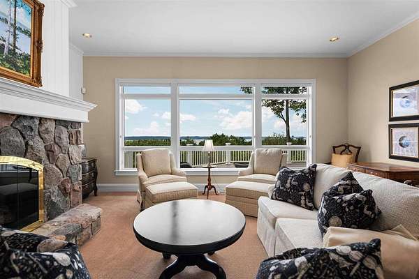 Commanding more than 26 acres above Lake Michigan, this Harbor Springs estate combines panoramic views of Little Traverse Bay with a premier location along M-119. With over 636 feet along M-119, at the entrance to the famed Tunnel of Trees - and the Little Traverse Wheelway bike path passing directly bythe property is as connected as it is private, minutes from downtown yet surrounded by rolling landscape and mature hardwoods. At the heart of the estate, a residence designed by Nick White and crafted by Behan Construction draws the bay into nearly every room. The main level centers on a spacious kitchen with custom cabinetry, granite flooring, island, breakfast nook, and wet bar, opening to a dining area framed by windows and a welcoming sitting room with fireplace. Also on this level, the primary suite offers sweeping water views, a walk-in closet, and a spa-like ensuite, while an attached three-car garage provides everyday ease. Upstairs, three bedrooms - including both jack-and-jill and private ensuite layouts - ensure space and comfort. The finished walkout lower level extends living outdoors with patio access and a new composite deck above, while a flexible room can serve as a study or additional bedroom. Meticulous landscaping grounds the home in its setting, where every vantage point captures a new perspective of the bay. As part of the offering, a separate two-bedroom, one-bath guest cottage is included - an understated complement to this remarkable estate. Unmatched in scale, location, and views, 731 W Hathaway Road is a rare opportunity to own one of Northern Michigans most distinctive properties.