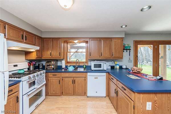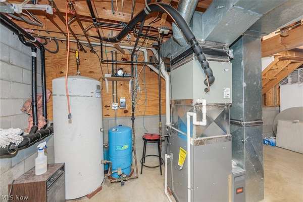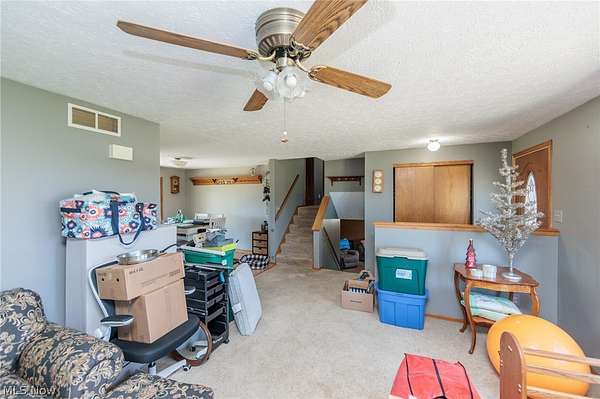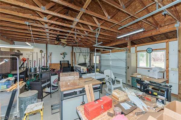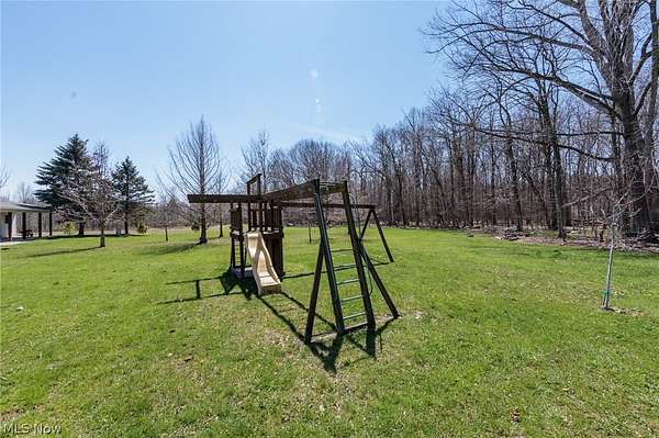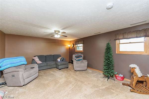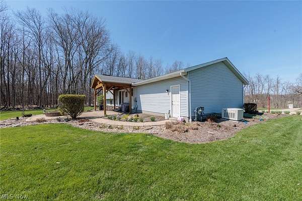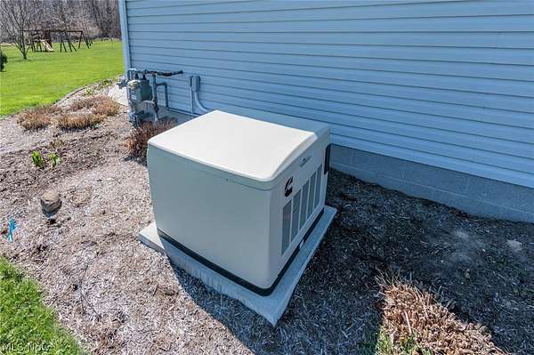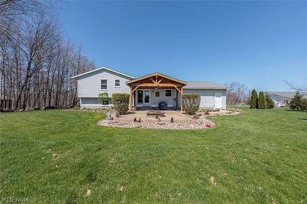 Nestled on a private, wooded 3.03-acre lot, this well-maintained split-level home (built in 1991) offers over 1,800 square feet of comfortable living space. Set back from the road for added privacy, the property features 3 bedrooms and 3 full bathrooms. The updated kitchen includes a stove, range, dishwasher, breakfast bar, and an adjoining dining area-perfect for everyday living and entertaining. Sliding doors lead to a stamped concrete covered lanai with a built-in fire pit, creating an ideal outdoor retreat. Inside, enjoy a formal living room with a beautiful bay window that fills the space with natural light, as well as a cozy family room for relaxing. The lower level offers a versatile flex space that can be used as a home office, playroom, or craft area. Additional updates include Pella windows, a newer roof and gutters (approximately 8 years old), and an updated natural gas furnace. The home is serviced by public water. Whole house generator. A standout feature is the 24x36 barn (built in 2011), complete with an 8-foot overhang, two overhead doors, a man door, concrete flooring, and gas and electric service. The barn is fully wired with ceiling lighting and four 220-volt outlets-perfect for hobbies, storage, or workshop needs. Comes with One Year Home Warranty!