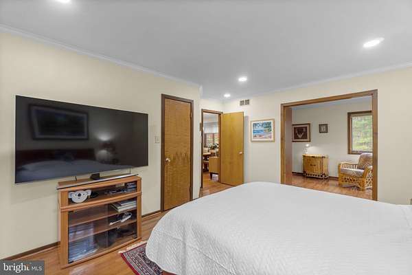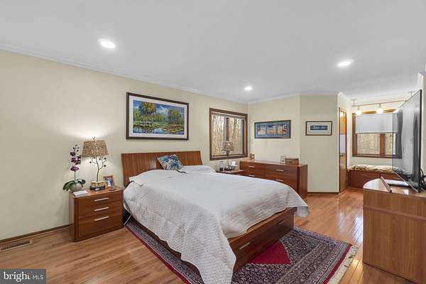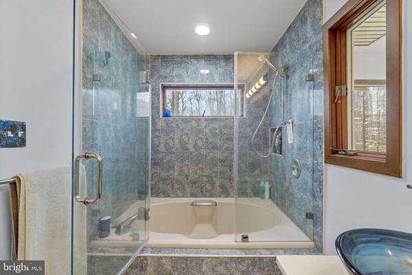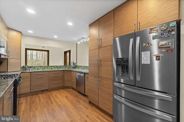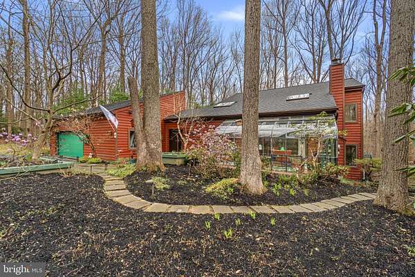 Nestled on three private, wooded acres in the coveted Simpson Woods community, this striking cedar contemporary residence is surrounded by lush, meticulously curated landscaping and serene natural beauty. Meandering stepping stone pathways wind through mature trees, garden beds, and thoughtfully designed outdoor spaces, creating a tranquil approach to the home's elegant entry. // Inside, a captivating open floor plan unfolds, showcasing a warm and inviting interior enriched by natural wood trim and architectural character throughout. An enclosed foyer with convenient garage access welcomes you inside, opening to a dramatic formal living room highlighted by gleaming hardwood floors, soaring vaulted ceilings with skylights, and a sleek floating built-in electric fireplace. A glass-enclosed sunroom extends the living space, flooding the home with natural light and offering peaceful views of the surrounding landscape. Just above, the formal dining room features rich hardwood flooring and custom built-ins, seamlessly connecting to the beautifully appointed eat-in kitchen. Designed for both everyday living and entertaining, the kitchen boasts stainless steel appliances, granite countertops, a vibrant ceramic tile backsplash, hardwood floors, a spacious pantry, and a breakfast bar with built-in accents. Privately situated off the dining area, the expansive primary suite serves as a luxurious retreat, complete with a serene sitting room and two walk-in closets outfitted with California(R) organizers. A light-filled vanity area overlooks the picturesque grounds, while the spa-inspired en suite bath features a dual sink vanity. // The fully finished lower level offers exceptional versatility, anchored by a spacious family room with a charming corner woodstove and direct access to an outdoor deck. This level also includes a private wellness space with a sauna, a full bath, and two additional bedrooms-one with a walk-in closet and another with custom built-in bookcases, ideal for a home office. A secondary flex space, just a few steps down, provides even more room for recreation, hobbies, or extended living, and connects conveniently to the laundry area. // Outdoors, the expansive wooded lot is an entertainer's dream, featuring tiered decking with a pergola, a dedicated grilling area, a tranquil pond and water feature, ambient landscape lighting, slate walkways, and a secondary side deck complete with a hot tub-perfect for relaxing under the trees.