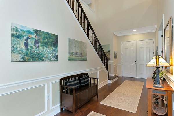 Upstairs are four additional bedrooms, including three with en-suite baths and walk-in closets, plus a large family/media room for gathering, entertaining, or unwinding in comfort. Thoughtful finishes, crown molding, generous room sizes, and an oversized three-car garage enhance both luxury and practicality.