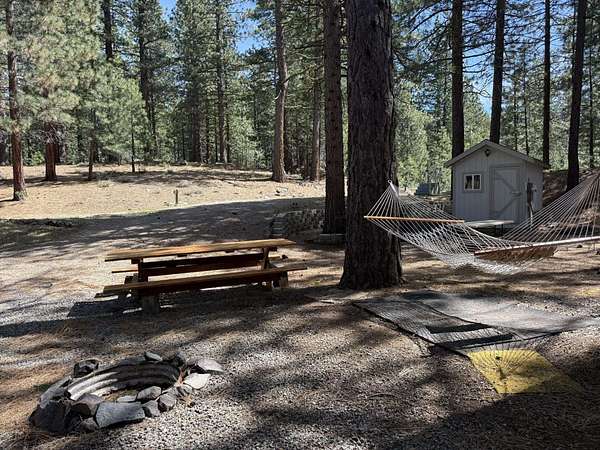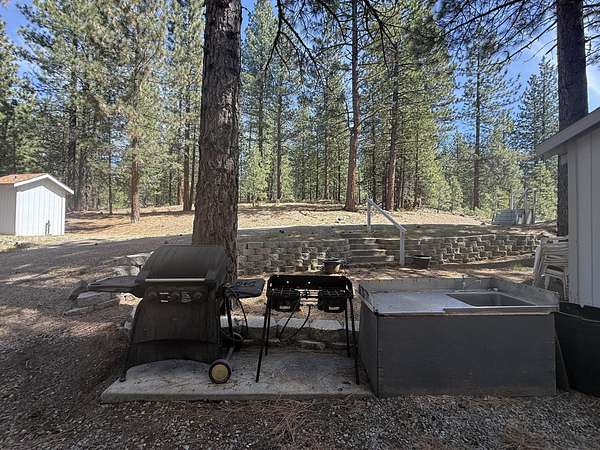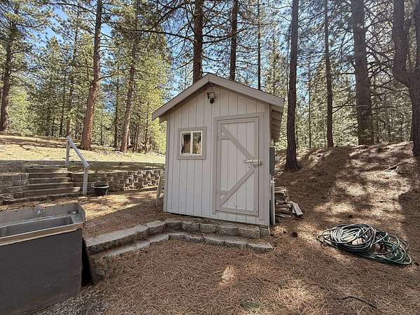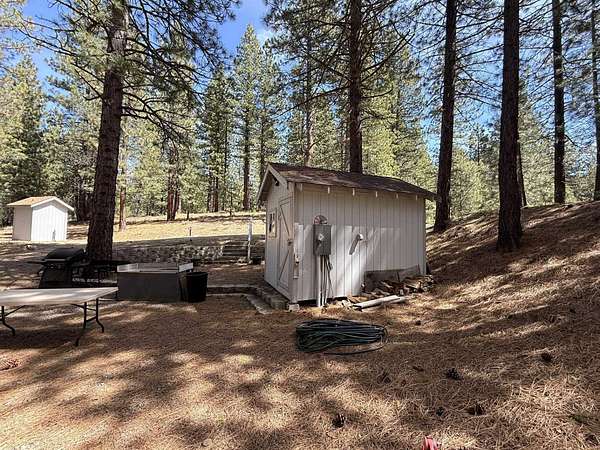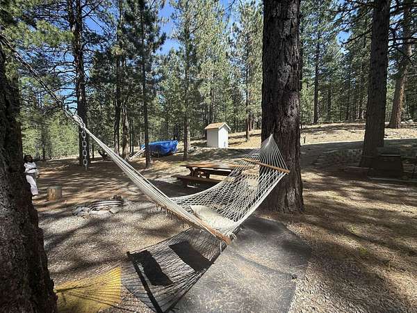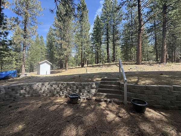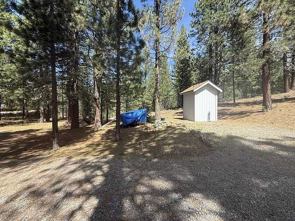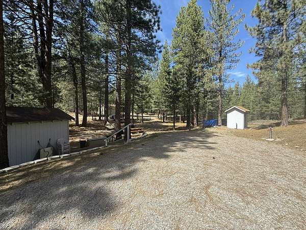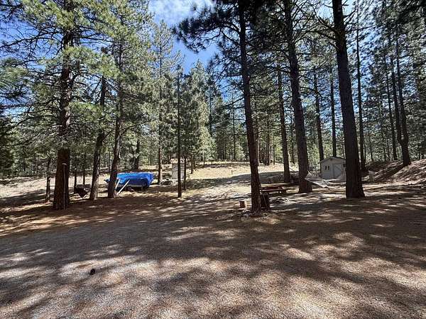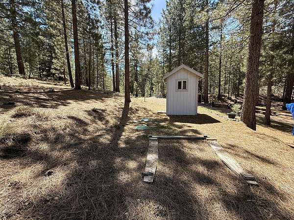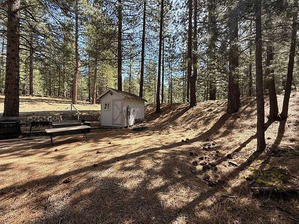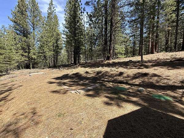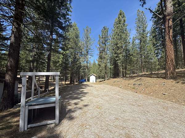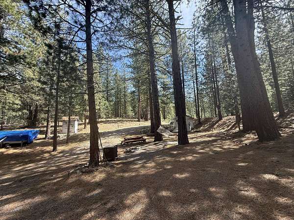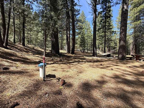 Beautiful acreage (approximately 6 acres) minutes to Lake Davis for fishing, boating, and hiking. Bring friends, family, and enjoy. This property offers scenic views and a peaceful, wooded setting with plenty of wildlife to enjoy. This property is well-equipped and ready for immediate use, featuring three RV sites one with a septic hookup/power and water and two additional sites with water and power. The property includes a well, septic system, and utilities. Enjoy the convenience of an enclosed bathroom with sink, outdoor kitchen, and well-maintained setup. Additional features include outdoor lighting, a storage shed, and an easy-access gravel driveway. With plenty of space and flexibility, this property is perfect for multiple users, camping, or building your future mountain getaway. This will go fast!