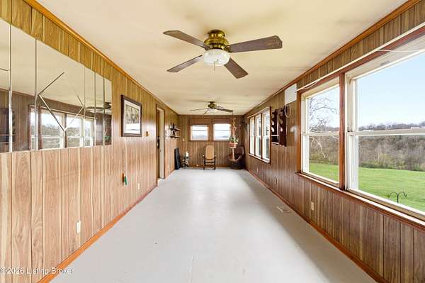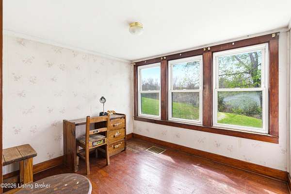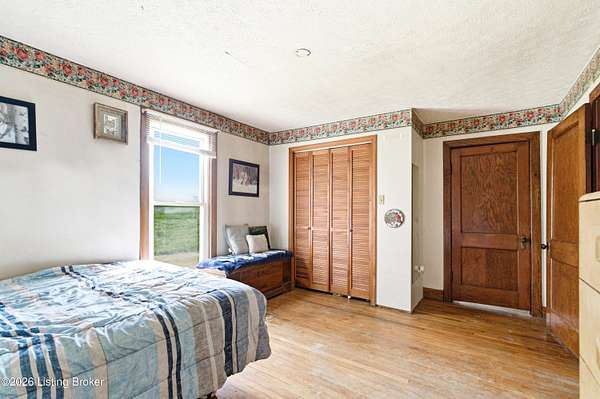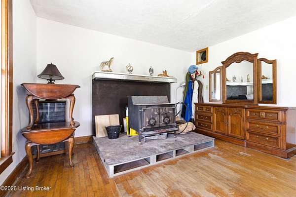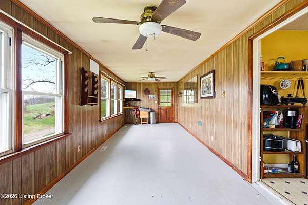 Charming farmhouse on 19.39 scenic acres in Henry County! This 3 bedroom home offers 1,727 finished sq ft plus a 1,316 sq ft unfinished basement ready for your vision. Recent updates include a new roof and HVAC (2023) and water heater (2019) for added peace of mind. Enjoy cozy evenings by the wood-burning stove and sunny mornings in the spacious sunroom off the kitchen. Upstairs offers abundant storage with generous closet space. The mostly cleared land is currently used for hay production and is ideal for livestock or horses. Outbuildings include a large detached garage with electric, a 2-story workshop, and a barn, plus a semi-trailer for extra storage. Complete with a pond, creek access, and some wooded acreage-surveyed in 2021. Endless possibilities await!