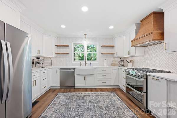 Location Location Location! This recently updated home is in a fabulous location with easy access to Charlotte. Situated on 2 secluded acres, the home sits at the end on a long private drive in a quiet setting. Lots of trees & space yet close to everything. Plenty of Room for all sorts of outdoor amenities, additional parking or expansion. Full brick construction with a beautifully updated gourmet kitchen. Gleaming hardwood floors through out most of the main floor. Spacious family room with masonry fireplace. Upstairs features 4 bedrooms and a bonus room. Primary suite features luxury bath with dual sinks, walk-in tiled shower & custom closet shelving. Brand New Roof in April 2026. No HOA. Bring your RV, boat or work vehicles. So many possibilities!