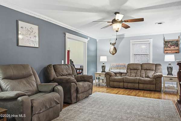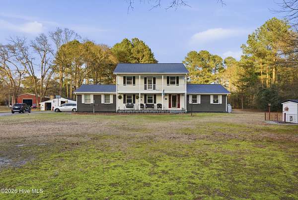 Welcome to 732 County Line Road in Roseboro -- a picturesque country retreat offering space, comfort, and endless possibilities on approximately 15.32 acres of beautiful rural land. This spacious 3-bedroom, 3-bath home features over 2,400 square feet of inviting living space designed for both everyday comfort and entertaining. A classic rocking-chair front porch and second-story balcony set the tone for relaxed country living, while inside you'll find hardwood floors, custom built-ins, and generous living areas filled with natural light. The large den and living room with a cozy gas fireplace provide plenty of room for gatherings, and the updated kitchen showcases solid-surface countertops, ample cabinetry, and quality appliances. A formal dining room, dedicated mudroom, and well-appointed bedrooms add functionality and charm throughout. Step outside to enjoy wide-open views, mature fruit trees, fenced pasture areas, and room for gardening, animals, or recreational use. The property also includes multiple outbuildings and a wired workshop with a bathroom -- ideal for hobbies, storage, or small business needs. An above-ground pool, riding ring, outdoor shooting range, outdoor kitchen and expansive yard space enhance the outdoor lifestyle this property offers. With recent updates including a heat pump, this home blends timeless character with practical improvements. Whether you're dreaming of a mini-farm, equestrian setup, or simply peaceful country living with room to grow, this property delivers privacy, versatility, and Southern charm just 10 minutes from historic downtown Roseboro. Schedule your private showing and experience the possibilities for yourself.