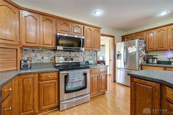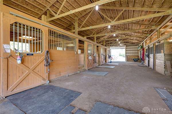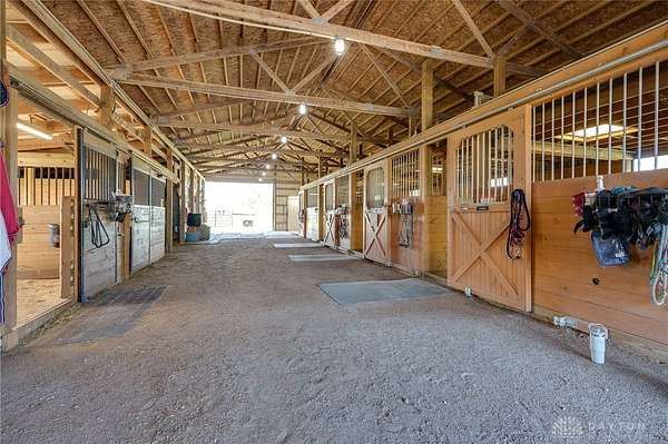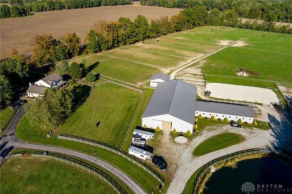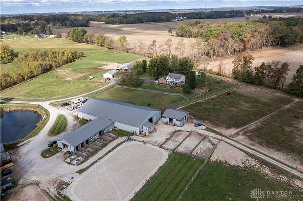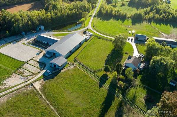 Welcome to Twin Oak Equestrian Center, located at 732 Settlemyre Rd, Washington Twp, OH. A dressage equestrian training center & a serene primary home nestled on 22.12 acres of stunning countryside. This property is the perfect fusion of luxury living & professional grade equestrian facilities, designed to meet the needs of passionate horse lovers/ trainers alike. This home offers 3,000+ sqft of living area, 5 spacious beds, 2.5 baths, a family room with vaulted ceiling adding to its open, airy feel. Relax in the 3 season rm or enjoy the finished basement with an egress window, ideal for entertaining. With beautiful views from every corner, this home provides a tranquil retreat from the demands of daily life. The private backyard blends seamlessly with the equestrian area, ensuring peace & quiet. For the equestrian enthusiast, the property includes 3 stall barns- a total of 26 stalls with concrete aisles, electricity, & water. Additional facilities include a hay barn, manure barn, 70 x 140 ft indoor arena, an outdoor arena, 11 fields with electric/ water, & 6 turnout areas. Do not miss out on this gem!