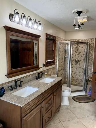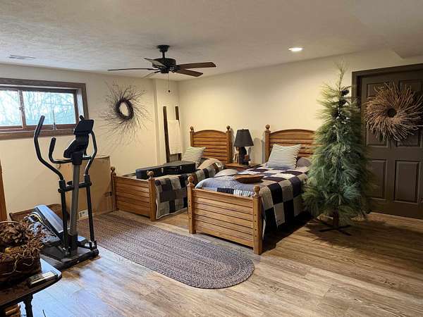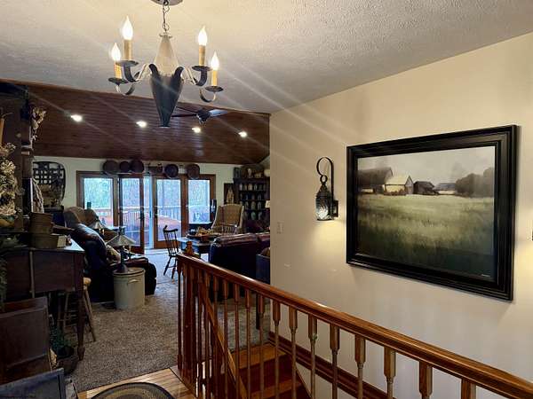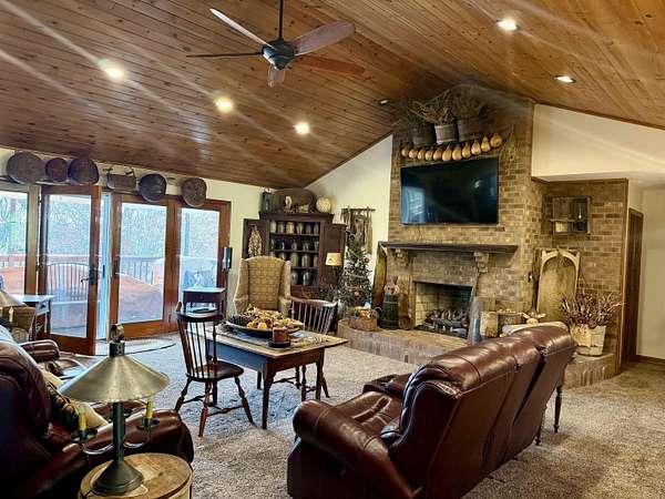 Welcome to luxury living in the prestigious South Pointe community! Situated on a double lot totaling 2.54 private acres, this stunning ranch style home offers the perfect blend of space, comfort, and serenity. Featuring 4 spacious bedrooms, 3 full bathrooms, and nearly 5,500 finished square feet, this home was designed for both everyday living and effortless entertaining. Expansive windows fill the home with natural light, creating a bright and inviting atmosphere throughout. Both living levels offer warm and welcoming gathering spaces. The main level living area features a vaulted ceiling with a cozy gas log fireplace, while the lower level gathering room is complete with a wood burner-- perfect as an additional heat source and for creating that inviting, rustic charm. Step outside to enjoy the peaceful surroundings from your beautiful two-tier deck—perfect for morning coffee, evening gatherings, or simply soaking in the privacy this property provides. With generous living spaces, a thoughtfully designed layout, and a setting that feels like your own private retreat, this South Pointe gem is ready to welcome its next owner home.