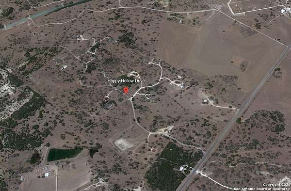 Come see Lot #1 of the idyllic Happy Hollow Ranch subdivision in Bandera. Formerly a working cattle ranch, the property welcomes you through a cattle guard and offers a true Hill Country feel. This 10+ acre tract retains its natural wooded landscape, creating a private and picturesque setting. Partial fencing is already in place. The property includes utilities with a well and septic system, along with a 4-bedroom, 2-bath residence featuring a large covered front patio. Lot #1 is uniquely positioned with Highway 173 frontage, offering COMMERCIAL-USE potential. An existing ingress/egress and building provide an excellent opportunity for a storefront or future commercial enterprise. Ample parking is available with a circle drive and additional parking space. The expansive acreage allows for MULTIPLE USES, and the rear portion of the property is accessible through a side gate within the Happy Hollow subdivision, offering both privacy and convenience. Easy access to dining, shopping, and in Bandera ISD. Schedule your viewing today!!!