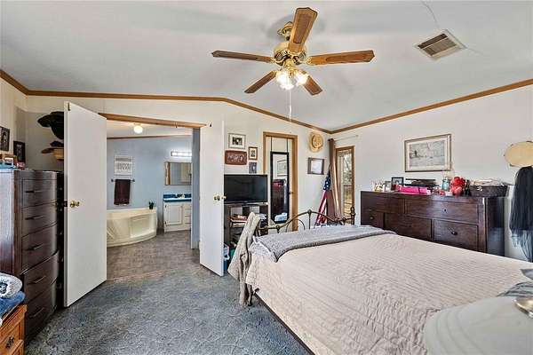 FINALLY get to be a land owner! Acreage in Blanket ISD, located close to Early. Land is great for horses or cattle, 2 connected stock tanks, multiple barns and horse stalls and a chicken coop. Well maintained manufactured home with metal roof in great shape, new siding and an RV hookup by house. House has 3 bedrooms, 2 full baths, laundry room, and open concept kitchen, dining and living area. Beautiful master bedroom and master bath with a garden tub. 2 spare bedrooms, one with beatiful bay windows. LOTS of storage in kitchen!! Come walk the land of your future farm or ranch home.