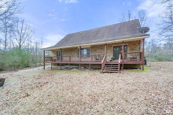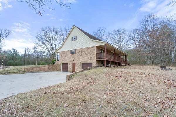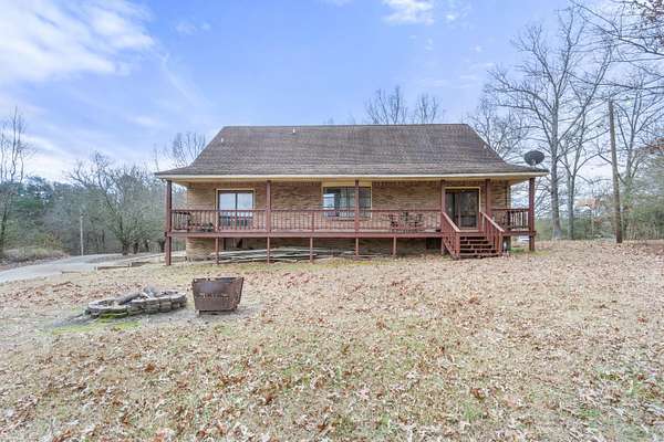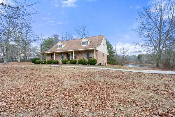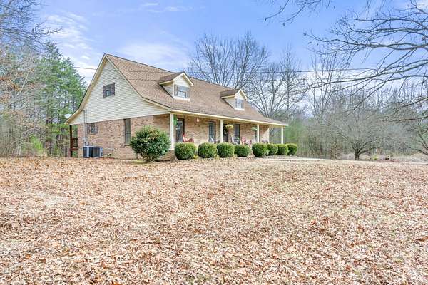 This Cape Cod style home, in Bryant, Alabama situated on 4.06 acres, features three spacious bedrooms and two bathrooms. The residence boasts spacious rooms, LVP hardwood flooring, stainless steel appliances. The kitchen features ample pantry space, numerous cabinets, a large island, and a formal dining room. The master suite includes a walk-in closet and a beautifully appointed bathroom with double bowl vanities and a large standup shower. An open office space and two suites with a large bathroom in between are perfectly appointed upstairs. The property features large, covered porches at the front and back. The clean unfinished basement offers space for five cars, a well-appointed workspace, and plenty of shelving, complemented by a five-car garage. Bring your fishing pole & sit and enjoy the pond.