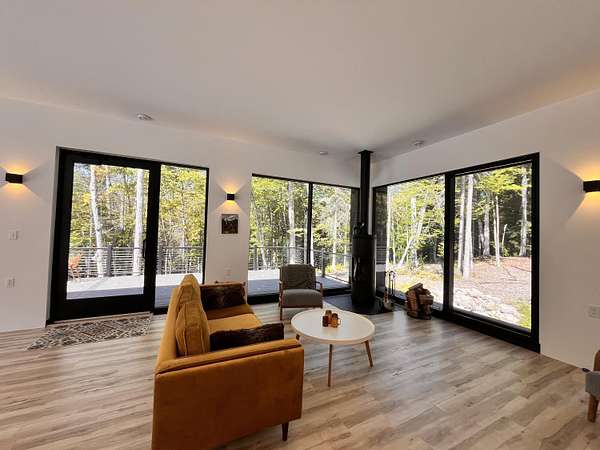 The Ore Bed Ranch is a 1046 acre preserve situated on nearly two miles of the wild and scenic Saranac River in the northeastern Adirondack Park. A comfortable, newly built, year round one-bedroom cottage can be found on one of the bends of the river. Built to high standards, the dwelling is clad with charred wood siding and fully powered by solar. With the Starlink internet, and expansive wrap around decks, this dwelling offers every amenity needed for modern living. With endless ATV trails, hunting and fishing opportunities, this property would be a sprotsman's paradise. Roughly 1/3 of acres have been carefully logged and significant work has been put into the roads, bridges and storage facilities. the on-site gravel pit makes maintenance easy. Additional natural features include a large beaver pond, trout stream and a hilltop site with expansive views that is begging to be built on. Thousands of acres of State Land, including several large lakes and hiking trails can be found within minutes of the property. Located 38 miles to the Saranac Lake Airport, 31 miles to Plattsburgh and less than two hours to Montreal, access to this property is convenient.