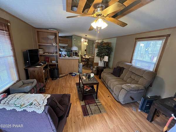 Est $965/moVery clean 2 bedroom 1 bath Mobile home with an 8 x 10 enclosed addition off the back on a 2.45 acre lot in a great location just about a mile right off of 191 in Lake Ariel. A wooded lot with some great privacy and a few outdoor storage sheds and on a nice level corner lot.