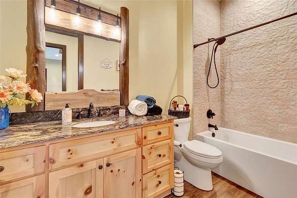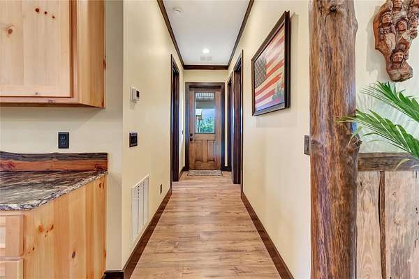Inside, every detail tells a story. Solid wood interior doors, wood laminate flooring throughout with a lifetime warranty, custom beetle-kill pine furniture, molding, and accent walls--harvested directly from the land--bring a striking blue-toned warmth throughout the home. The living room is pre-wired with an active surround sound system, while a propane fireplace adds ambiance. The range and dryer are equipped for either propane or electric, with both connections already in place for ultimate convenience.
