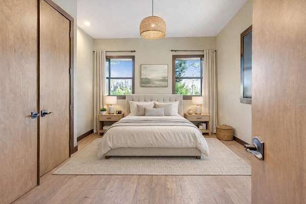 Outdoor living is elevated with two screened lanais--one in the front for magical sunrises and a spacious, oversized lanai in the rear for golden evenings. The specialized screening is intentionally subtle, allowing wildlife to wander close while homeowners enjoy unobstructed, immersive nature viewing.