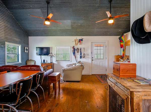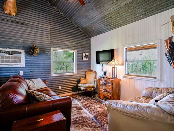 Wanna get lost in the majesty of the native Texas Hill Country? Check out this PERFECT escape- 11.85 hilltop acres tucked between huge ranch land and offering panoramic, 30 mile views, peaceful quiet, dark sky nights, NO RESTRICTIONS, and affordably priced! This cute and comfy 3/1 cabin is spot on appointed with all the comforts that a weekend cowboy expects. Sit a spell on the full length porch and forget what took you so long to get here. Located between Llano/San Saba, Brady, Brownwood and Richland Springs, this is the ideal hunter's luxury campsite. You'll be just a few minutes from quaint and charming San Saba, Pecan Capital of the World, with its spectacular scenery, abundant wildlife, and more miles of running streams than any other county in Texas. Explore the ancient pecan groves through Risien Park, situated along the San Saba River. The park offers stunning views, walking trails, and birding blinds. Historic downtown is anchored by Harry's Boots, providing high quality western wear since 1939, Wedding Oak Winery tasting room, located in a renovated 1926, and the Dofflemyr Hotel, a posh, boutique inn originally constructed in 1913. San Saba offers a wide variety of local cuisine, fine dining, antiquing and mercantile shops, and of course- PLENTY of pecan treats! Tommy Lee Jones is not wrong in choosing San Saba for his ranch. Grab a cool beverage, go back roading, and check out this unique property today.