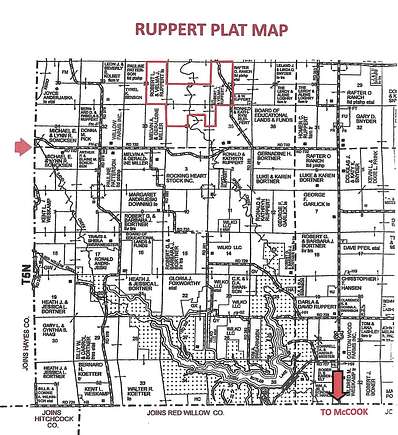 This farm and ranch agricultural property has recently been surveryed as being 1,220 acres. Frontier County tax statement show 1,271 acres. The property is located 19 miles south of the village of Maywood and 18 miles north of McCook, Nebraska. McCook with a population of 7,500 is the largest shopping and business center in southwest Nebraska.