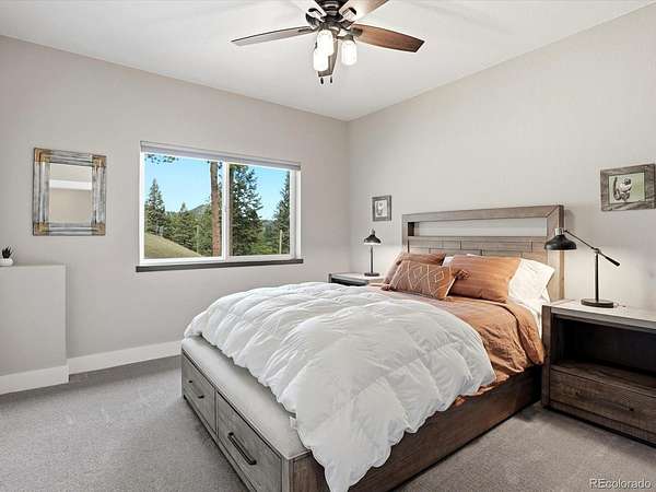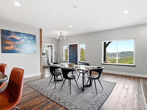 If you’ve been dreaming of mountain privacy without sacrificing convenience, this is it. Tucked on two acres just two miles from Highway 285, this newer home gives you the best of both worlds. Easy access to Denver when you need it. Instant escape to the mountains when you don’t. And the views? They show up big from the moment you walk into the living room. The curb appeal has been thoughtfully elevated with updates to the front façade and professional landscaping in both the front and back, creating a polished welcome while still embracing the natural mountain setting. The covered front porch with stamped concrete is the kind of spot where coffee tastes better and sunsets last longer. Inside, the heart of the home is exactly where it should be: a wide-open kitchen and great room designed for gathering. High-end appliances, generous counter space, and a walk-in pantry make it functional, while warm barn wood accents add that perfect touch of mountain character. The home has been exceptionally cared for and you’ll be hard pressed to find a scuff on the walls. The primary suite is privately tucked away on its own side of the home. The en suite bathroom delivers with a freestanding soaking tub, oversized walk-in shower, and a closet big enough to handle all the boots, layers, and ski gear. On the opposite wing, two spacious bedrooms, a full bath, and main-level laundry keep daily life easy and organized. Need a work-from-home setup? The dedicated office overlooks the valley, because if you’re going to take Zoom calls, you might as well have a view. Downstairs, the walkout basement offers a huge bonus space, perfect for a family/rec room, plus a full bathroom and access to an impressive 800+ square foot three-car garage with epoxy flooring. Room for vehicles, toys, and all the mountain essentials. After a long day on the trails or the slopes, unwind in your own private sauna. The only thing missing from this home is you!