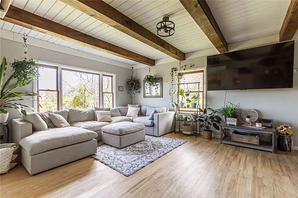OPEN HOUSE SATURDAY OCTOBER 11th:12:00 PM-2:00 PM. Escape to peace and privacy in this beautiful 6-bedroom home nestled on a quiet private road. Set on over 4 acres of open space and natural beauty, this home offers a welcoming layout with two bedrooms on the main floor and a convenient first-floor laundry. An in-law suite adds extra space for guests or extended family, while the spacious rooms throughout feature warm hardwood flooring. The kitchen has been thoughtfully opened up to the living room, creating a bright, open-concept space complete with a bar stool seating area-perfect for casual dining or entertaining. Recent updates provide added comfort and peace of mind: heat pump (2020), roof (2016), siding (2018), septic system (2021), well pump (2017), an updated electrical panel and Ring camera's for additional security. Whether you're looking for a peaceful full-time residence or a profitable short-term rental opportunity, this home delivers comfort, space, and long-term value. With its modern updates, private setting, and stunning views, it's more than a home - it's a place to truly unwind, build memories, and make your own. No negotiations until 10/15/2025 at 2 PM. ***Buyers must have appointment to see property.