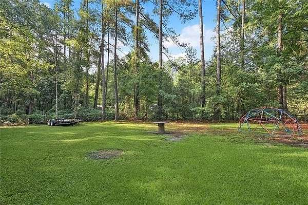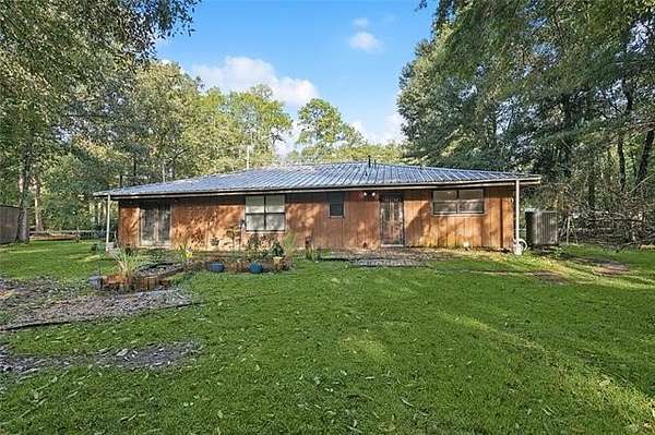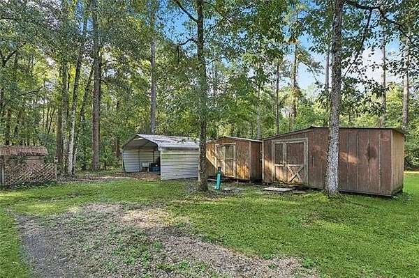 Nestled on 3.46 acres just five minutes from the Town of Abita Springs, known for its events, live music, weekend Farmer's Market, and the Trace, this four bedroom two bath home offers the perfect blend of space and convenience. Inside you will find extra large bedrooms with oversized closets, light filled living areas, hard wood flooring, and a country style kitchen that is ideal for gathering and entertaining. Windows frame beautiful views of the gardens and wooded landscape, while a durable metal roof adds lasting peace of mind. Outdoors, the property features two workshops/sheds with full electricity, and a metal covered car port, providing endless possibilities for hobbies, storage, or a place to park the big toys. The land is partially fenced for pets or privacy and includes garden beds surrounded by fruit trees such as lemon, fig, blueberry, huckleberry, and satsuma, along with colorful roses. Recent updates include a new well pump and tank installed in August 2025 and a septic aerator replaced in 2024. With wide open space, tranquil surroundings, and close proximity to town, this property is ready to welcome its next owner.