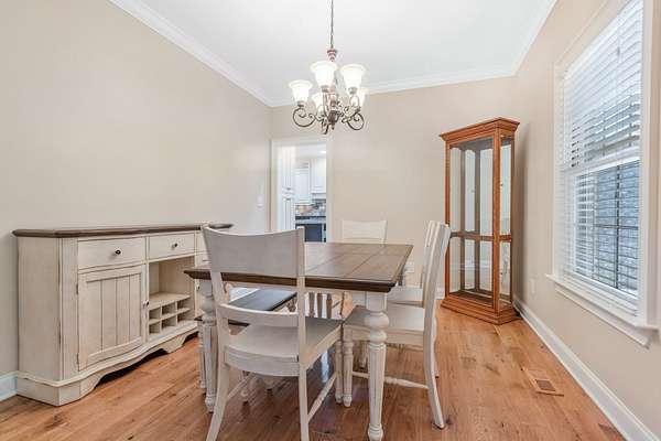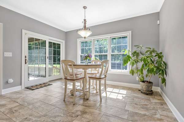 The chef's kitchen is ideal for entertaining, while the screened-in porch invites you to relax and enjoy the peaceful natural surroundings. The third bedroom is currently set up as a home office but can easily be converted back by removing the built-ins and adding a closet door.