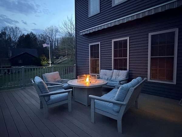 Est $4,566/moMove in ready, this terrific 5 bedroom, 3 1/2 bath home located at beautiful Ridgebury Lake is a real gem! Vaulted living room with gas fireplace, office, formal dining room, eat in kitchen, first floor Master suite, 3 bedrooms and bath on the second floor, and bedroom, bath ,family room and storage areas in the walk out basement. The rear deck offers sitting and eating areas, sun setter shade and hot tub. Enjoy all the lake activities, swimming, fishing, boating, and beautiful change of seasons from this lakefront property. There is also a generator should there be a loss of power.