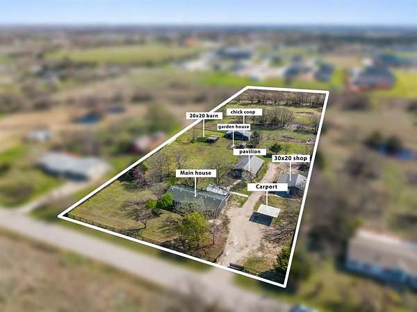 WOW! Country living at its best on 3 acres in Royse City, TX. This Move in Ready home features 3 beds 2 bathroom with a warm and inviting layout designed for comfortable country living. Inside, you'll find a spacious living room with a wood burning fireplace and a cozy dining area, large bedrooms with a walk in closets and large kitchen with an eat in island countertop, perfect for gatherings. Step outside and enjoy the peaceful surroundings from large front and back large patio porches- ideal for relaxing and taking in the wide-open views. The property is well-equipped for a country lifestyle, featuring a 30x20 shop, 30x 30 barn, backyard patio pavilion, covered carport, fenced in garden house and chicken coop offering plenty of space for hobbies, animals, and outdoor projects. NO HOA and outside City limits. With so much room to EXPAND, the possibilities are truly endless! Experience the charm, space, flexibility of country living while still being conveniently located to Rockwall shops, Lake Ray Hubbard, restaurants, retails and fast access to major highway.
