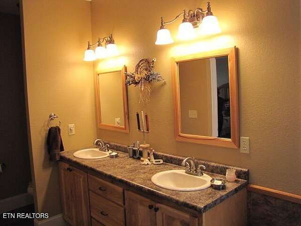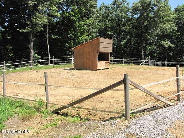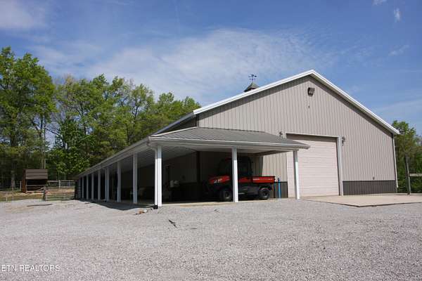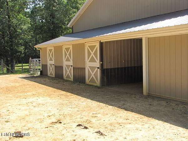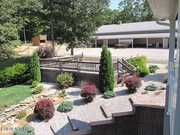 Come home to horse country. Located in Ridgetop Acres adjacent to the Big South Fork National Recreation Area containing 125,000 acres. This estate style setting consist of a large brick/vinyl home on 17.3 acres. Spacious rooms with up to 5 bedrooms/ 3 baths, formal dining room, study/office, finished room above the attached 2 car garage. Fully finished basement with full bathroom that can be used as a separate suite/ living quarters for guest and family. Appliances, eat in kitchen with bar, raised ceilings, oversized windows, laminate flooring are just a few of the features. Large walkout covered back porch/deck, covered front porch and walkout patio from the basement. Additional freestanding open deck to enjoy cooking and socializing outdoors. Oversized 100x60 out building with concrete flooring, 3 stalls that open to the pasture, 2 tack rooms with ample space for cars, RV's, boat , tractor and mower along with workshop area and covered side porch. Available for RV hookup as well. Acreage is both wooded and pasture, fenced and cross fenced. Trails through out the subdivision that lead to waterfalls, scenic overlooks, picnic areas and The Big South Fork Park with miles of trails to ride and hike.
