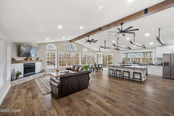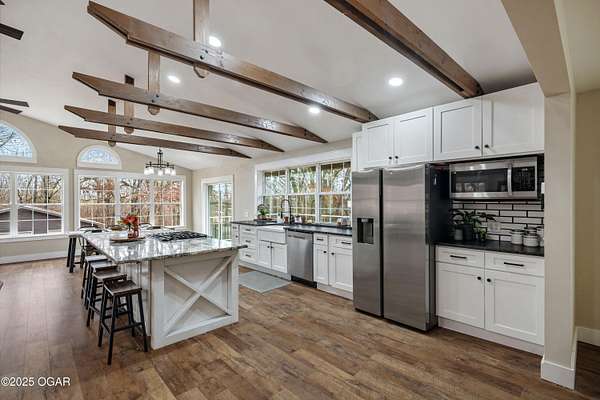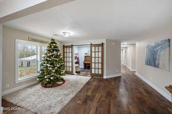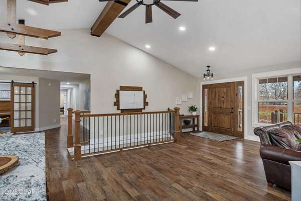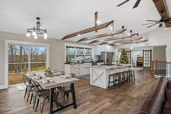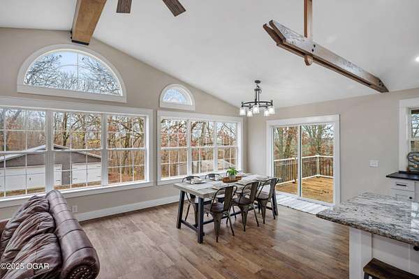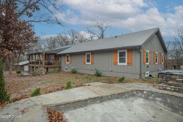 Welcome to 7341 Bethel Rd-where modern luxury meets peaceful country living. Ideally positioned between Seneca and Joplin, this completely updated home offers the perfect blend of privacy, space, and high-end comfort. Energy-efficient solar panels help reduce utility costs, so you can enjoy more home and land with less overhead. Featuring 5 total bedrooms-four on the main level and one in the walk-out basement-this property offers exceptional flexibility for multigenerational living, guest accommodations, or a dedicated home office. The full kitchen and private entrance in the walk-out basement make it perfectly suited as a second living quarters, providing independence and convenience for extended family or long-term guests. Every inch of the home showcases clean, modern finishes that create a bright, cohesive, move-in-ready feel. Outside, the amenities are truly impressive. The home sits on 10 acres (more or less) of gently rolling land-ideal for exploring, outdoor recreation, hobby farming, or simply enjoying the panoramic views. A large covered porch extends the living space outdoors and offers the perfect spot for morning coffee or evening relaxation. For storage and projects, the property includes both a 3-car attached garage and a large detached shop. Your private outdoor retreat is enhanced by a brand-new in-ground pool, complete with a relaxing hot tub, ideal for unwinding or entertaining. And for the outdoor enthusiast, a custom hunting/camping shed sits at the back of the acreage-an ideal escape for weekend stays, wildlife watching, or storing gear. With its modern updates, energy-saving solar panels, versatile living spaces, acreage, and unbeatable location, this property truly offers the best of rural luxury-just minutes from city conveniences. Schedule your private showing today.