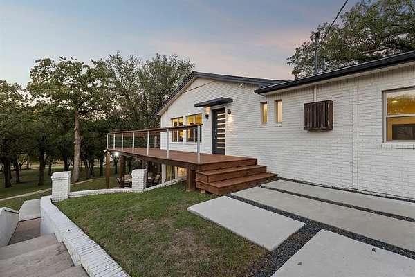 Welcome to your 8-acre lake-front paradise on Eagle Mountain Lake, the ultimate retreat for those seeking adventure and serenity. This beautiful home was completely redesigned and renovated from the studs up in 2017, with a new roof added in 2020, offering modern luxury throughout. Picture ending your day watching the sunset by the lakeside fire pit, surrounded by mature trees and a park-like setting.