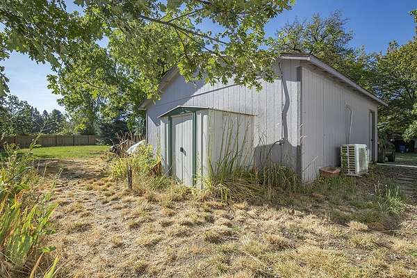 Charming 1910 Farmhouse on Nearly 10 EFU Acres with Irrigation and Views! Welcome to this Applegate Valley homestead, set on 9.42 flat, fully fenced, and usable acres with irrigation rights from Murphy Ditch. This classic 3-bdrm, 2-bth farmhouse offers 1,632 sq ft of cozy living space, featuring a propane stove in the living room, a bright kitchen and dining area, and covered front porch with screened back porch for year-round enjoyment. The property showcases a beautiful pasture with a variety of mature trees, including magnolia, black walnut, cedar, redwood, cottonwood, and hazelnut. A service gate allows for easy RV access, and there is ample space for equipment and animals. Outbuildings include a detached 2-car garage and a 2020-built, insulated, climate-controlled shop with 220 power. Permitted greenhouses and irrigation infrastructure make this property ideal for horses, farming, or homesteading. Located next to the Applegate Golf Course and just minutes from town. Come tour!
