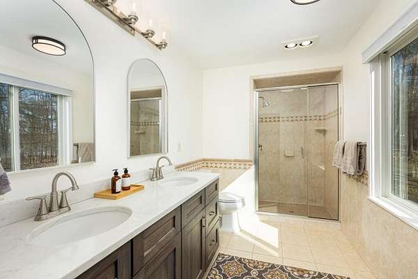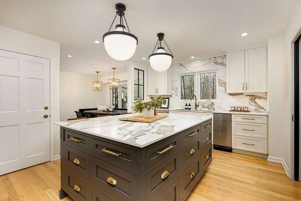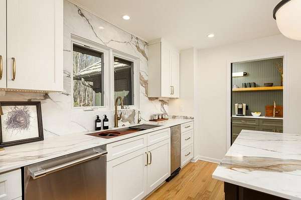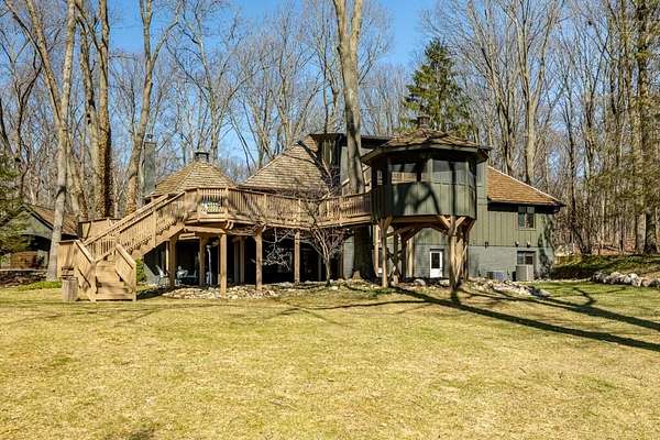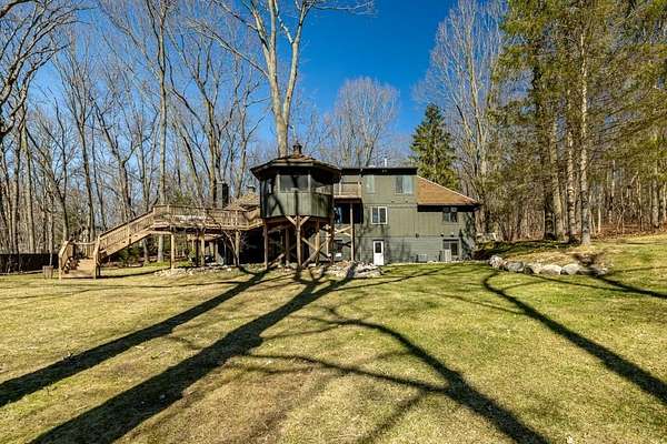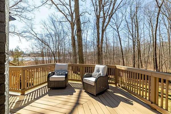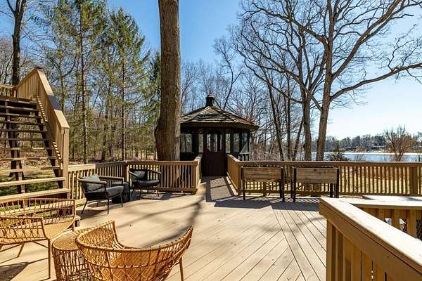 MULTIPLE OFFERS - BEST AND FINAL DEADLINE: Monday, March 16th, 2:00 pm. This stunning & elevated custom home enjoys a park-like setting w/majestic trees, sweeping lawns & panoramic lake views. The all-new driveway lends a stately approach to the home w/ample parking & large circular way to the distinctive ''covered bridge'' barn. This meticulously improved home boasts incredible outdoor living space w/ winding decks, multiple sitting areas & 3-season screened gazebo, all offering commanding views out to the tranquility & stunning beauty of Parks Lake. The heart of the interior is the exquisitely reimagined kitchen, w/its striking Symphony Stone center island & backsplash, Thermador range, SS appliances & fabulous butler's pantry for added storage, microwave cubby & prep sink. The floorplan for this gorgeous home is uniquely flexible-primary suites on the main & upper levels, laundry room on the main & lower level. Walk-out LL also enjoys guest/live-in amenities.