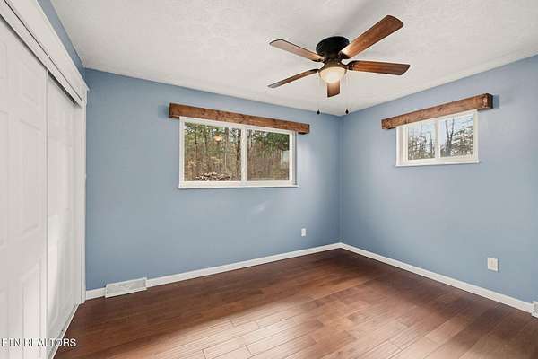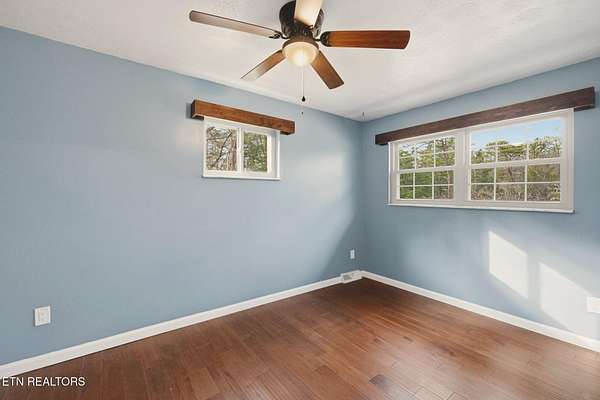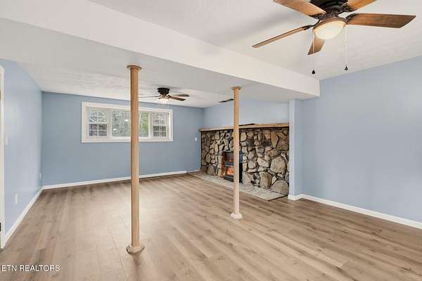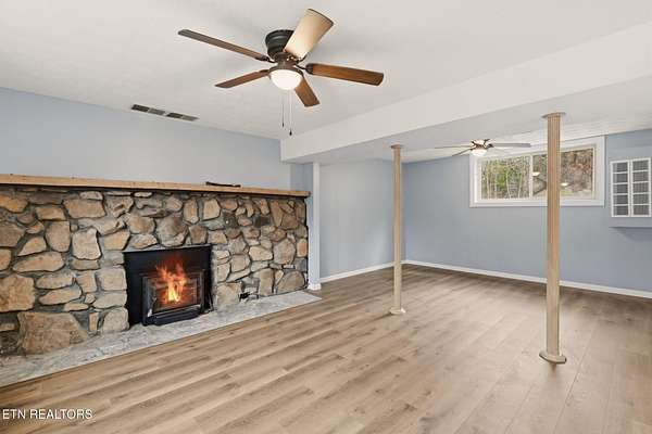 Introducing a rare retreat nestled on over 3.5 unrestricted acres of private, wooded bliss in Maryville. Set far off the road with no HOA, this beautifully updated 3-bedroom, 2-bath home with a cozy den offers peace, privacy, and room to roam. Inside, you'll find a warm and inviting atmosphere featuring 3.25'' hardwood floors throughout the upper level and two wood-burning fireplaces, perfect for cozy evenings. The thoughtfully updated kitchen boasts granite countertops and brand-new appliances, while a walk-in pantry with a brand-new washer and dryer adds everyday convenience. A charming covered front porch invites you to enjoy your morning coffee surrounded by nature. Notable upgrades include new vinyl windows (2022) that flood the home with natural light, a 6-year-old architectural shingle roof, PEX plumbing with a single city water connection at the road, updated downspouts, and 200-amp electrical service (2018). The septic system has been well maintained and pumped in spring 2024 for added peace of mind. Additional features include a stunning glass front door, a 2-car carport near the entrance, an attached garage with epoxy floors, and a detached one-car garage with a riding lawn mower that conveys. A hunting shack is tucked into the property, and the expansive acreage offers endless possibilities for outdoor activities, gardening, or simply enjoying the serenity of the wooded surroundings. A rare blend of modern updates, land, and privacy...this property is truly special.