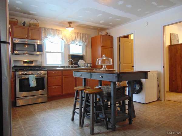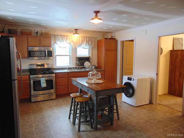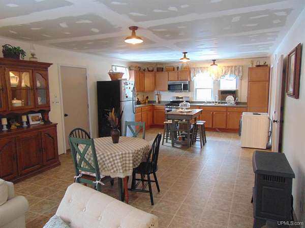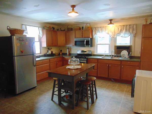 Looking for that secluded home/camp adjacent to Ottawa National Forest? Look no further as this 3BR 1BA home with detached 14x32 garage is nestled on 30 wooded acres just east, outside the quiet town of Kenton! You'll love the natural lighting entering the front covered porch, perfect for sipping a cup of morning coffee while enjoying the views of wildlife! The home features a huge open kitchen/dining/living area, with a cozy freestanding wood stove, an updated bathroom and stainless steel appliances. The previous owner has made the following updates, all new drywall throughout, new insulation, new freestanding propane space heater, all new interior doors and trim, some new windows, new osmosis water and filter system. New washer/dryer unit that will be hooked up prior to closing. Main source of heat is a propane space heater. There is a small storage shed and a woodshed. Buck pole is just behind the house! This property is located off a quiet year round road! Close to snowmobile/atv trails! The property borders Ottawa National Forest to the south so there is many miles to hunt or explore! The East Branch of the Ontonagon River is just off the south end of the property for some excellent Trout fishing. If you're in the market for a four season property, look no further! This would also make for a great small hobby farm. All furnishings are removed. Home and proerty being sold As Is! Call for an appointment today!