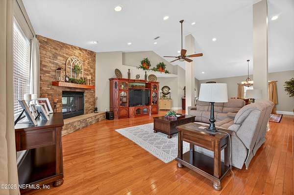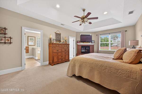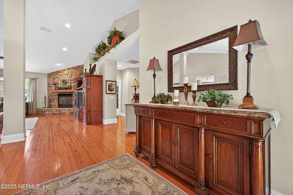 Extraordinary custom brick home built by owner sits on a 2 acre lot on a pond. The 24x27 work shop has two stories and has existing plumbing offering endless possibilities for separate space for extended family and more. The home is pristine from floor to vaulted ceilings. The large kitchen has solid oak cabinets, an island and peninsula for hosting large gatherings of family and friends. The great room has a 14 ft vaulted ceiling and there are 9 ft ceilings and eight inch base boards though out the rest of the house. A beautiful stacked stone fire place anchors the space. The spacious master bedroom also has a fireplace creating a cozy retreat. Separate his and hers closets are a special convenience. The master bath contributes to the retreat with a large jetted tub to really unwind at days end. Enjoy your morning coffee or evening glass of wine on the spacious back porch and deck overlooking the pond and preserve view. Roof is new in 2023